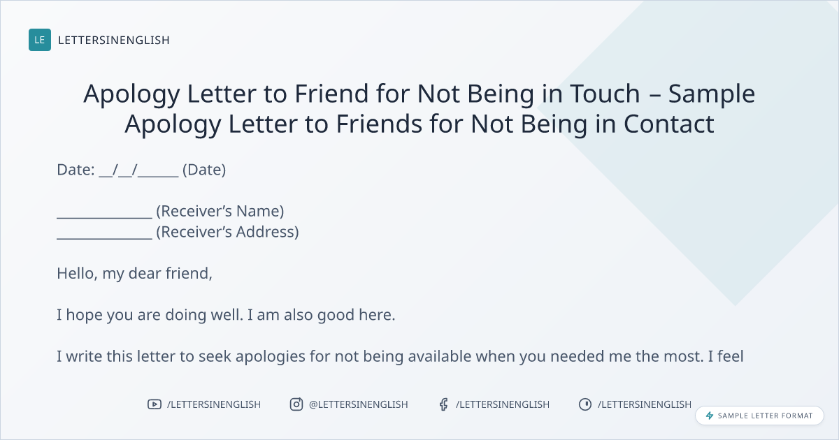 Apology Letter to Friend for Not Being in Touch – Sample Apology Letter to Friends for Not Being in Contact