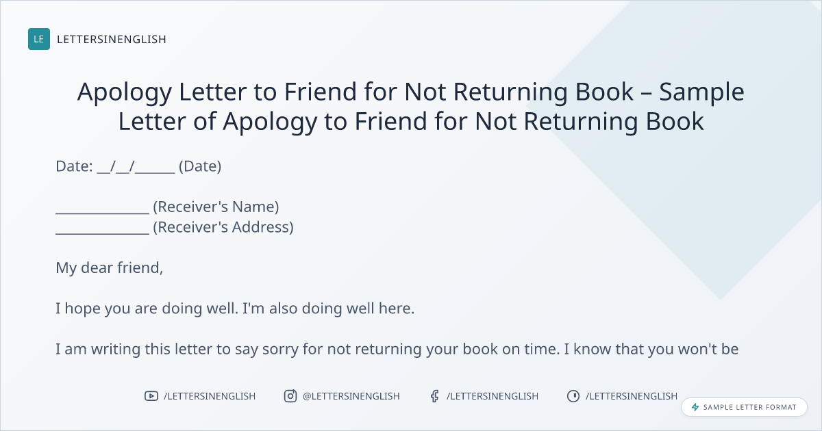 Apology Letter to Friend for Not Returning Book – Sample Letter of Apology to Friend for Not Returning Book