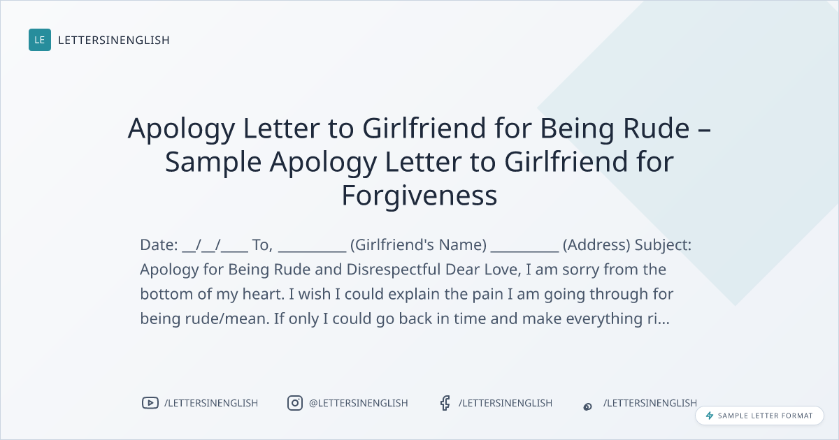 Apology Letter to Girlfriend for Being Rude – Sample Apology Letter to Girlfriend for Forgiveness