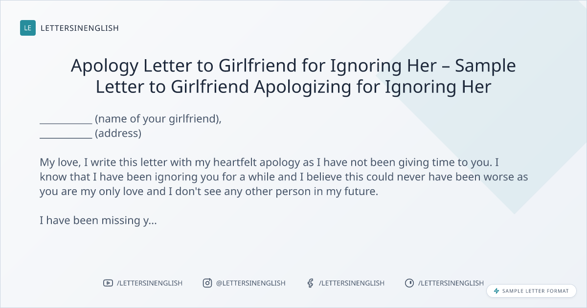 Apology Letter to Girlfriend for Ignoring Her – Sample Letter to Girlfriend Apologizing for Ignoring Her