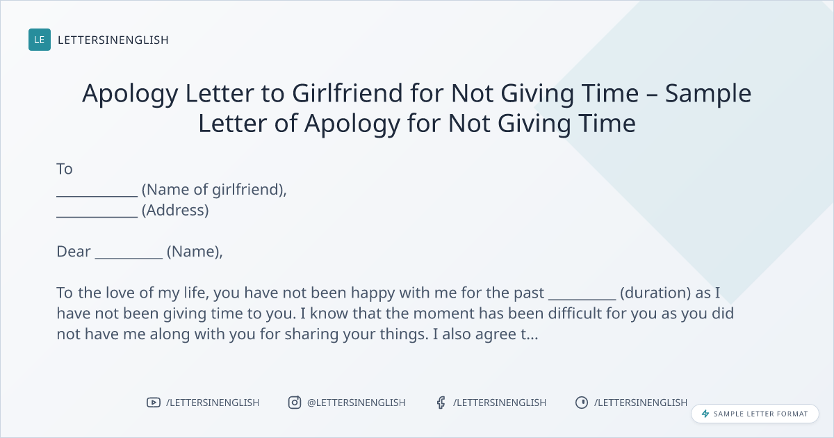 Apology Letter to Girlfriend for Not Giving Time – Sample Letter of Apology for Not Giving Time