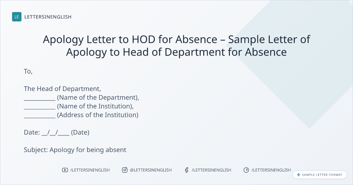 Apology Letter to HOD for Absence – Sample Letter of Apology to Head of Department for Absence