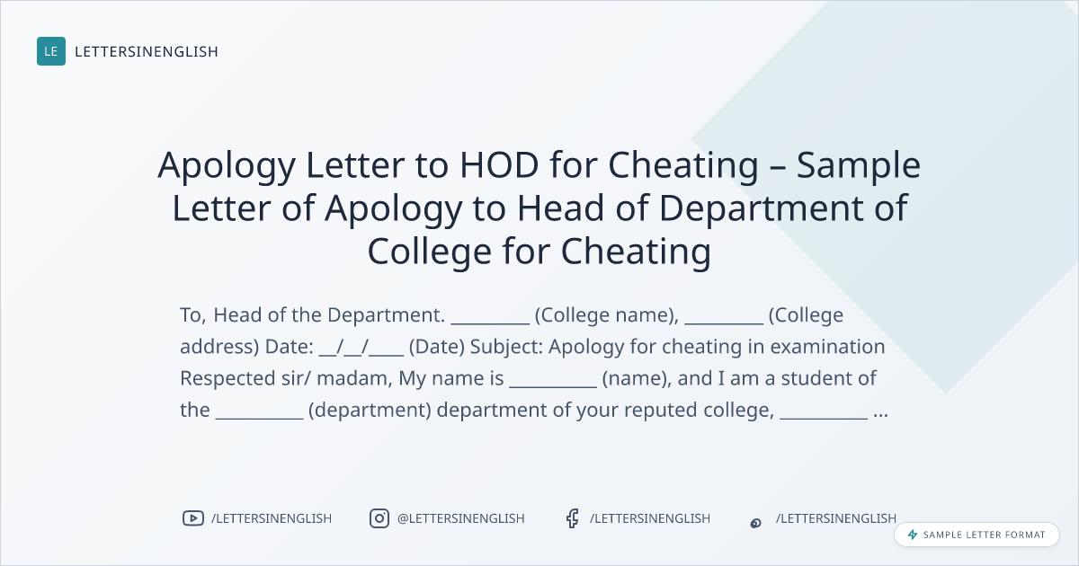 Apology Letter to HOD for Cheating – Sample Letter of Apology to Head of Department of College for Cheating