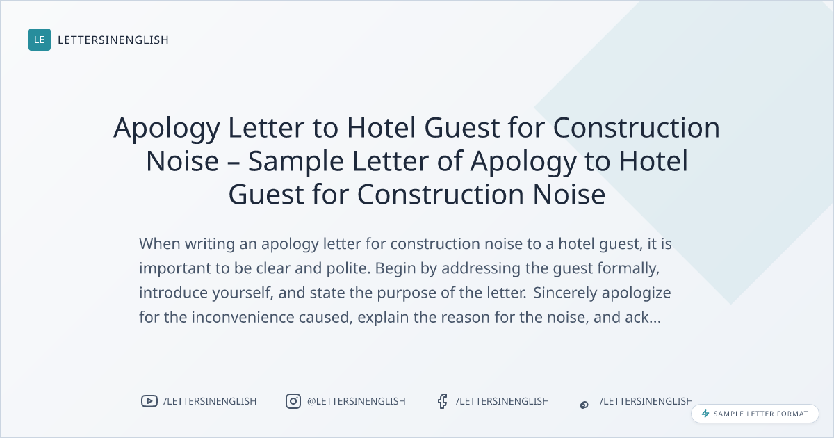 Apology Letter to Hotel Guest for Construction Noise – Sample Letter of Apology to Hotel Guest for Construction Noise