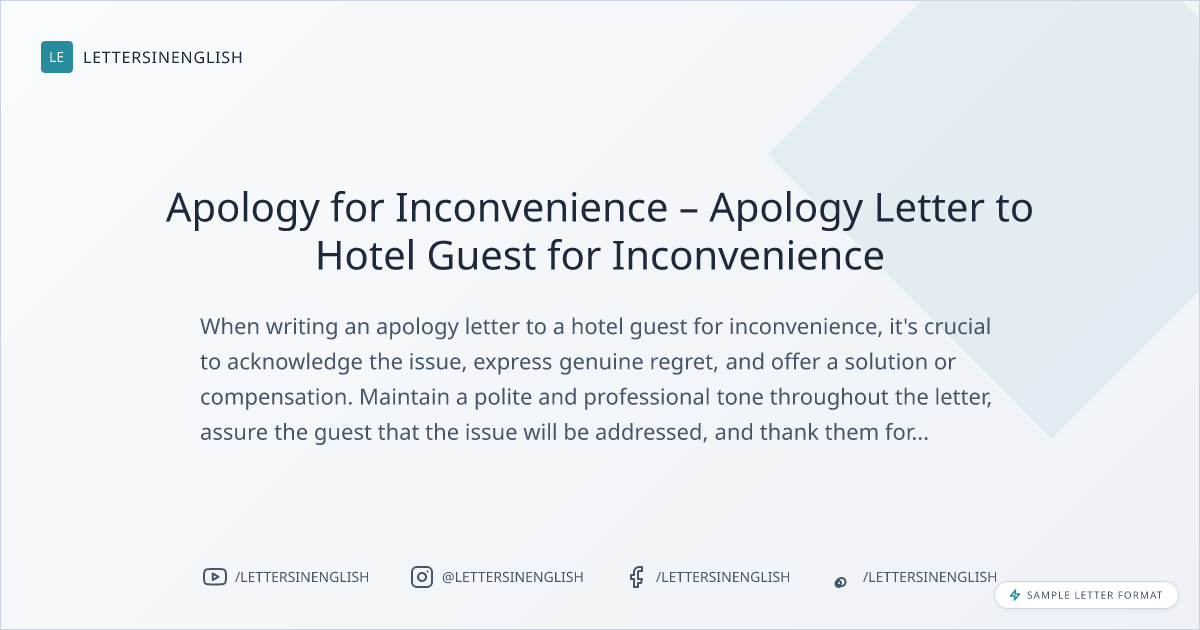 Apology for Inconvenience – Apology Letter to Hotel Guest for Inconvenience