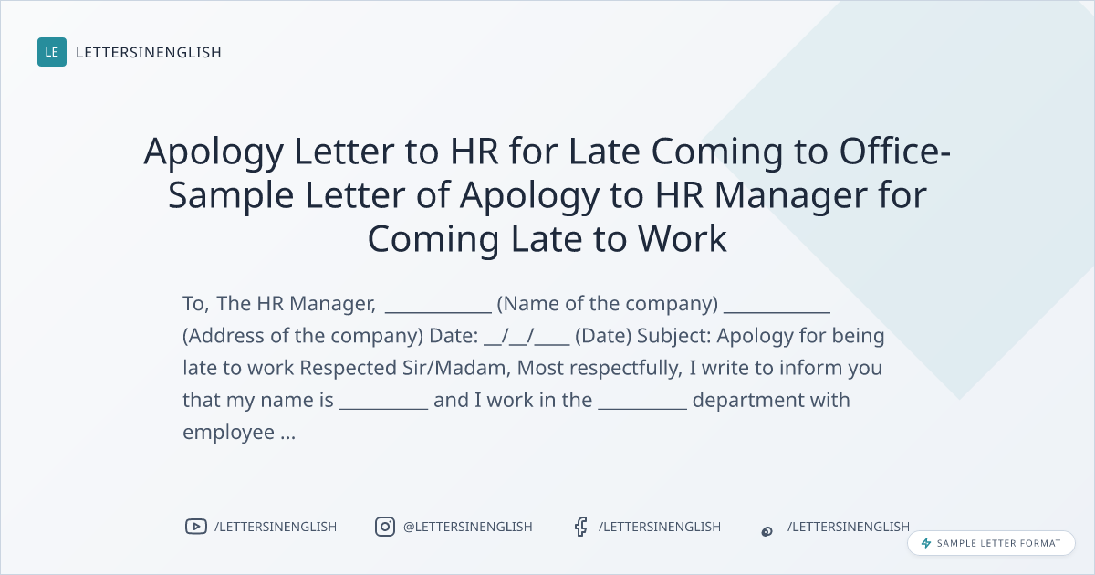Apology Letter to HR for Late Coming to Office- Sample Letter of Apology to HR Manager for Coming Late to Work