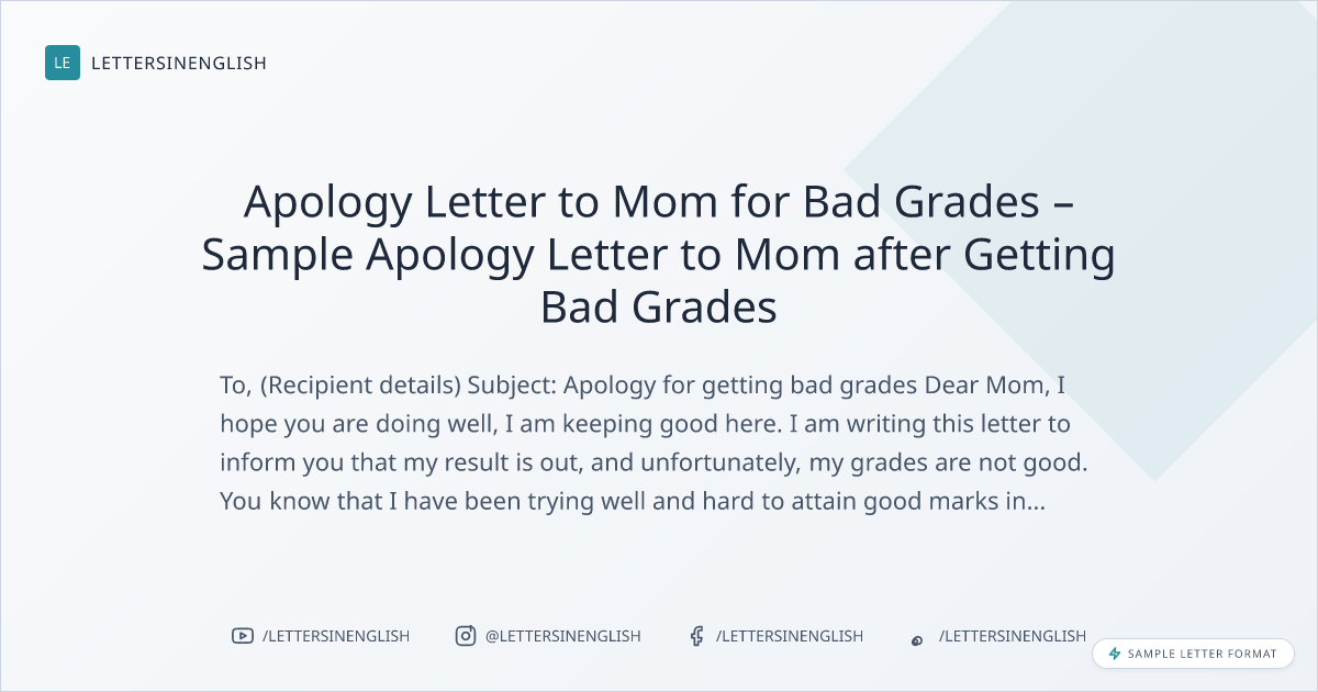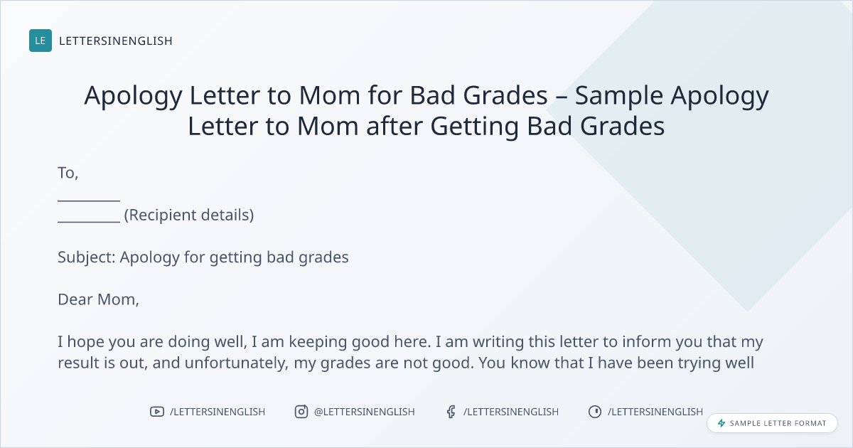 Apology Letter to Mom for Bad Grades – Sample Apology Letter to Mom after Getting Bad Grades