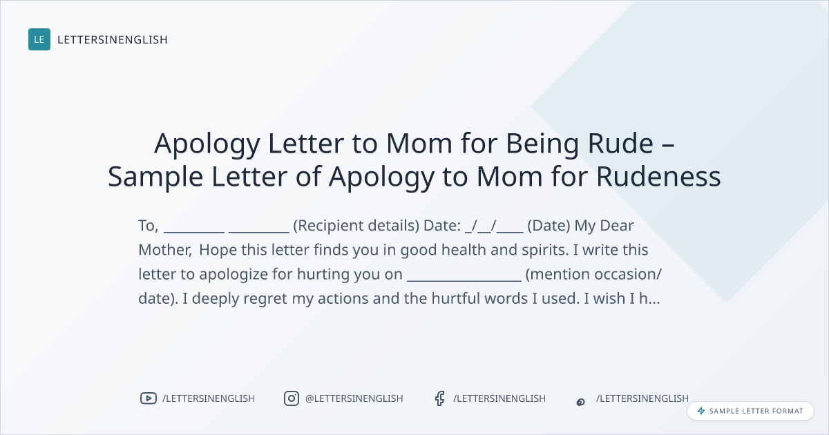 Apology Letter to Mom for Being Rude – Sample Letter of Apology to Mom for Rudeness