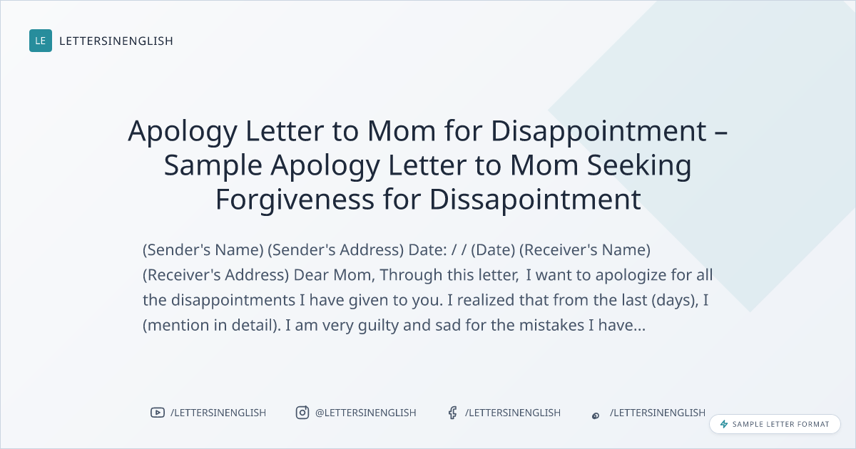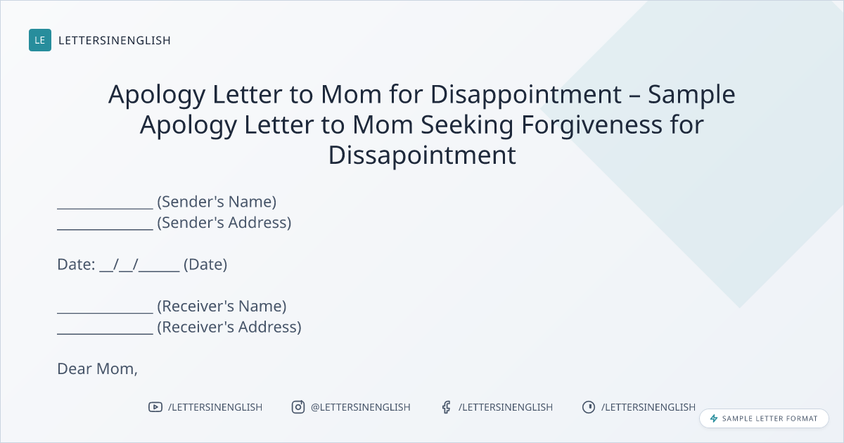 Apology Letter to Mom for Disappointment – Sample Apology Letter to Mom Seeking Forgiveness for Dissapointment