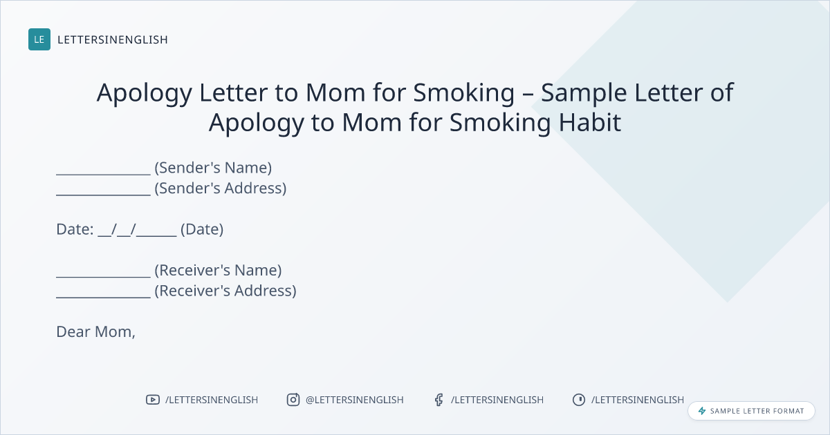 Apology Letter to Mom for Smoking – Sample Letter of Apology to Mom for Smoking Habit