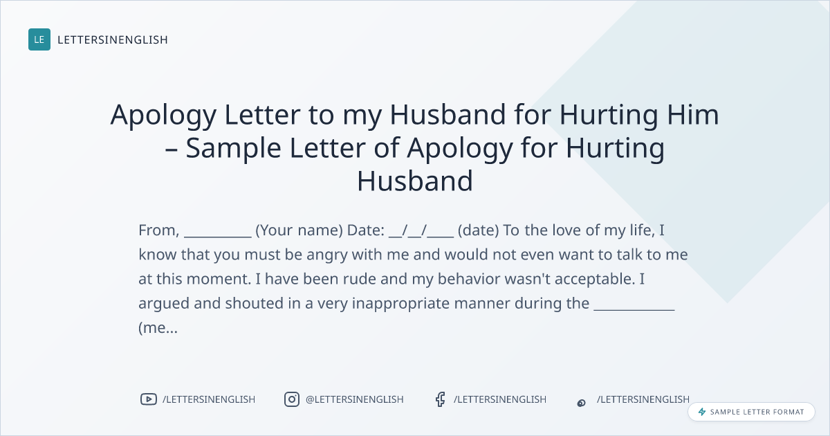 Apology Letter to my Husband for Hurting Him – Sample Letter of Apology for Hurting Husband