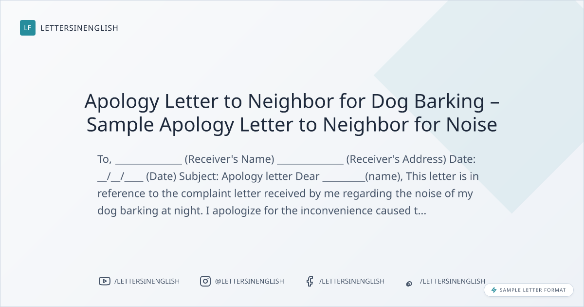 Apology Letter to Neighbor for Dog Barking – Sample Apology Letter to Neighbor for Noise