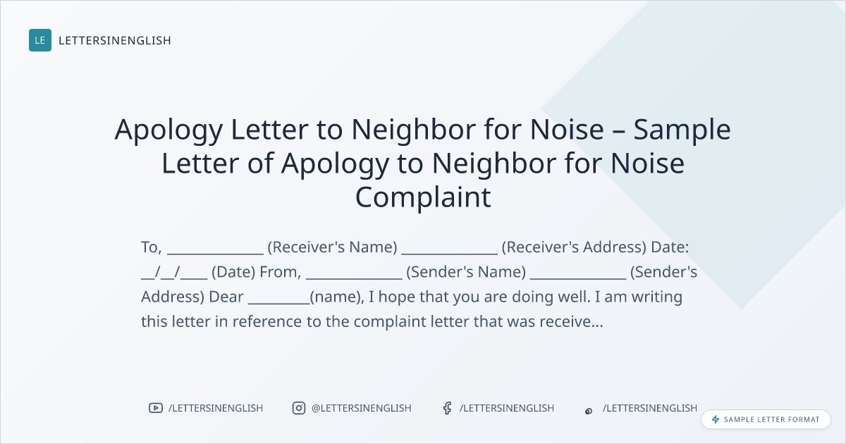 Apology Letter to Neighbor for Noise – Sample Letter of Apology to Neighbor for Noise Complaint
