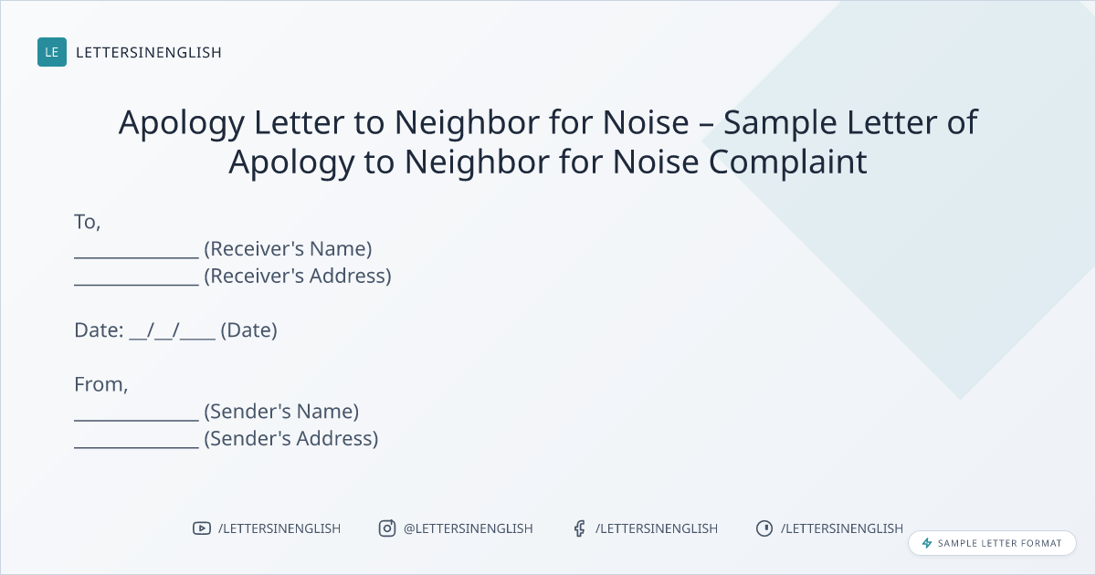 Sample Apology Letter to Neighbor for Noise