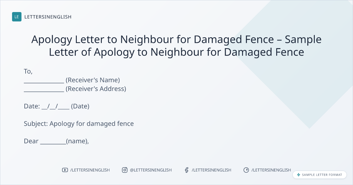 Apology Letter to Neighbour for Damaged Fence – Sample Letter of Apology to Neighbour for Damaged Fence
