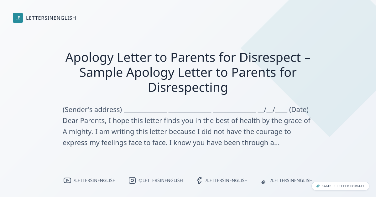 Apology Letter to Parents for Disrespect – Sample Apology Letter to Parents for Disrespecting