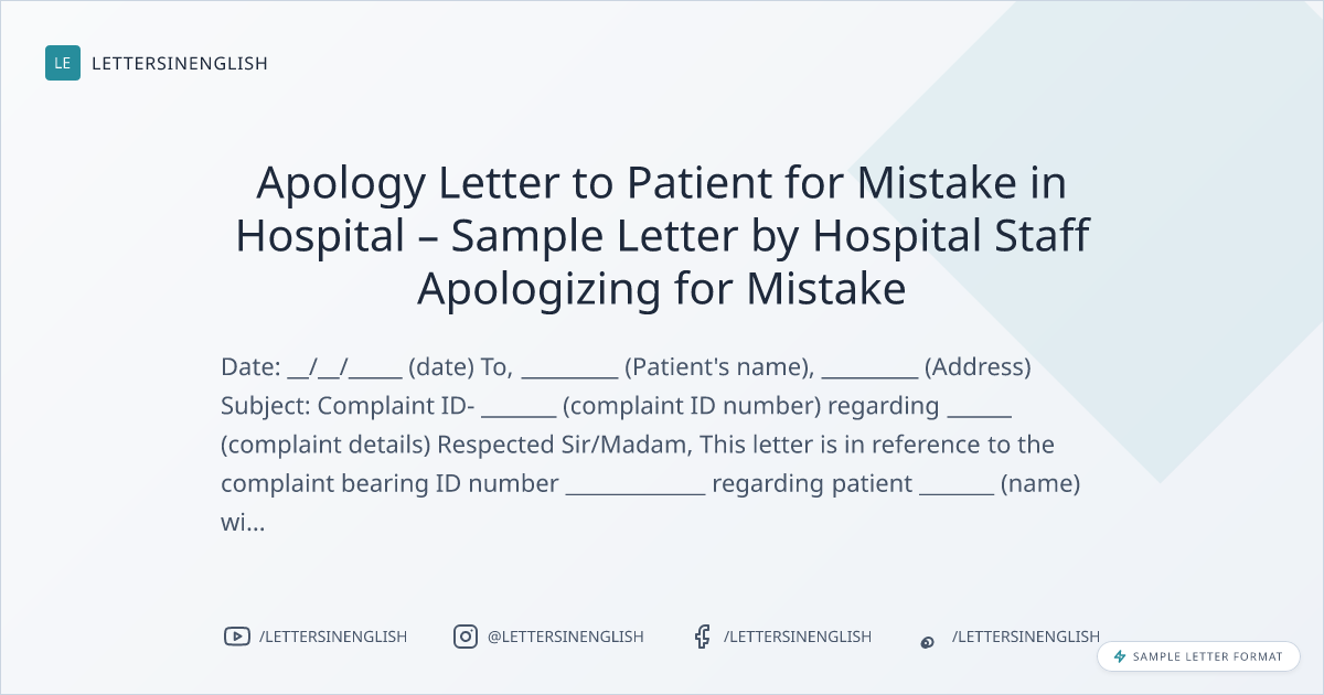 Apology Letter to Patient for Mistake in Hospital – Sample Letter by Hospital Staff Apologizing for Mistake