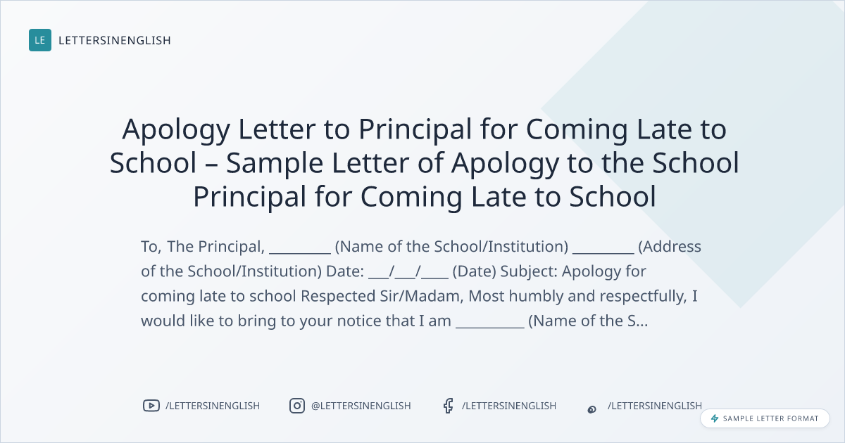 Apology Letter to Principal for Coming Late to School – Sample Letter of Apology to the School Principal for Coming Late to School