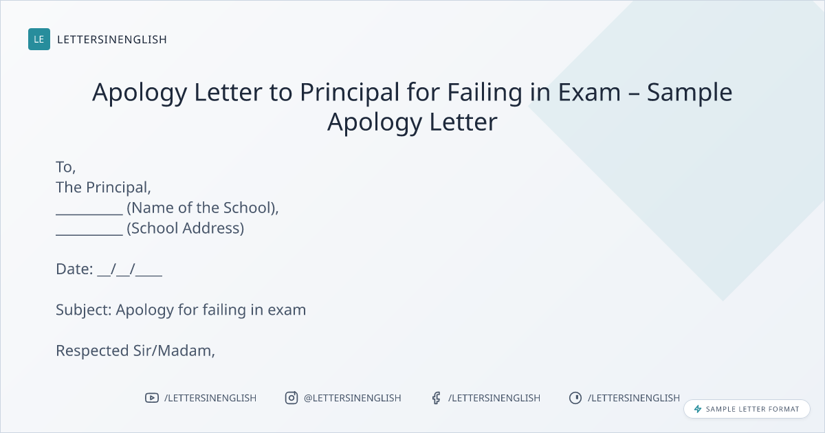 Apology Letter to Principal for Failing in Exam – Sample Apology Letter