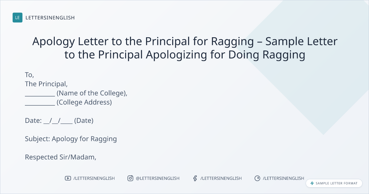 Sample Letter to the Principal Apologizing for Doing Ragging