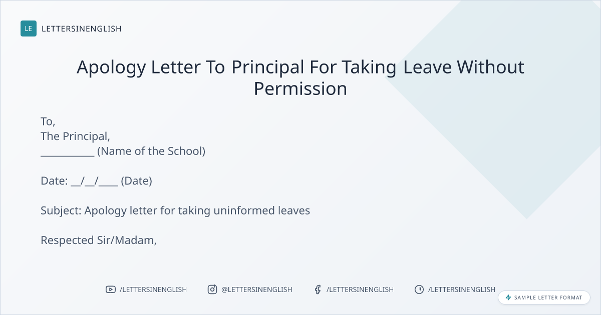 Apology Letter To Principal For Taking Leave Without Permission