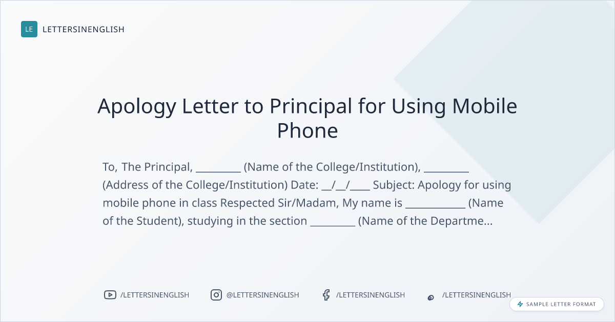 Apology Letter to Principal for Mobile Phone Misuse During Class
