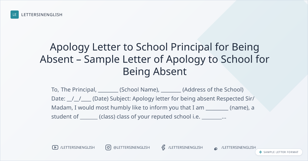Apology Letter to School Principal for Being Absent – Sample Letter of Apology to School for Being Absent