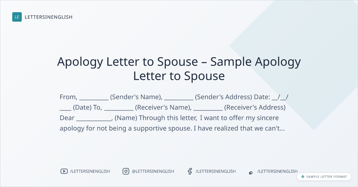 Apology Letter to Spouse – Sample Apology Letter to Spouse