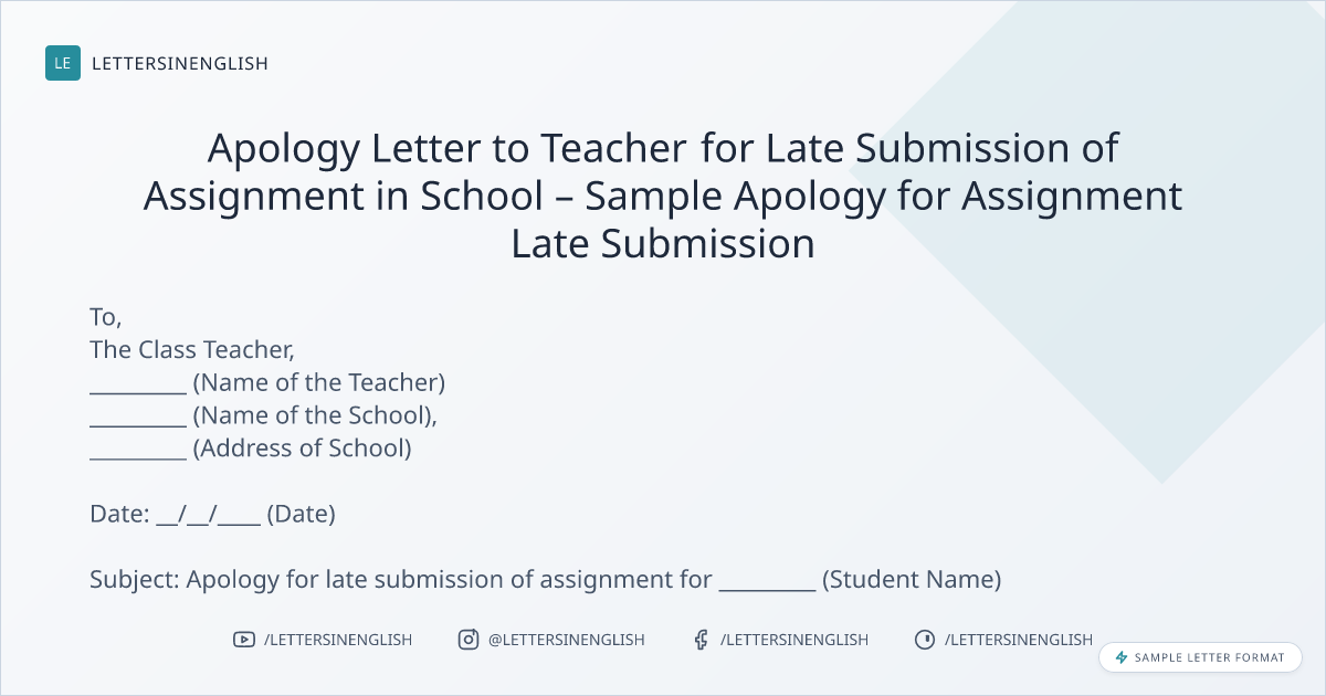 Apology Letter to Teacher for Late Submission of Assignment in School – Sample Apology for Assignment Late Submission