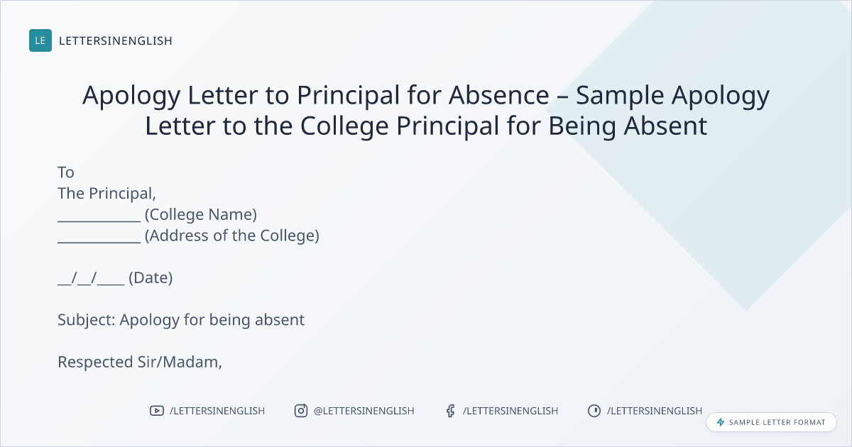 Apology Letter to Principal for Absence – Sample Apology Letter to the College Principal for Being Absent