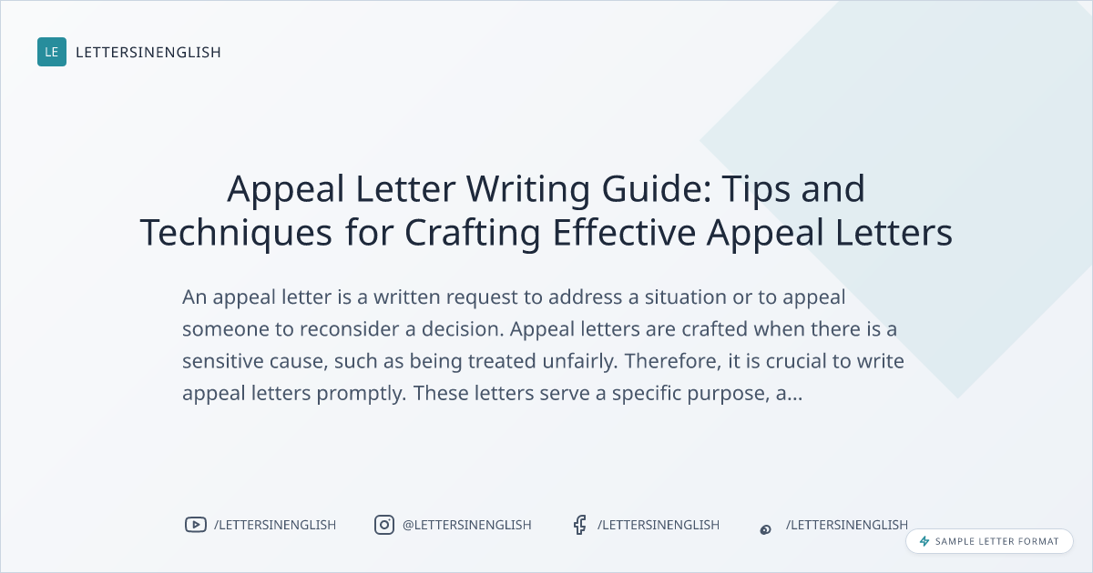 Appeal letters can be associated with various sources and causes, and some common formats include: