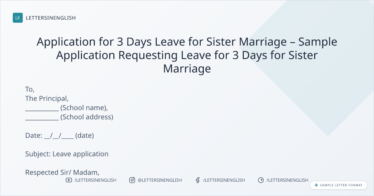Application for 3 Days Leave for Sister Marriage – Sample Application Requesting Leave for 3 Days for Sister Marriage