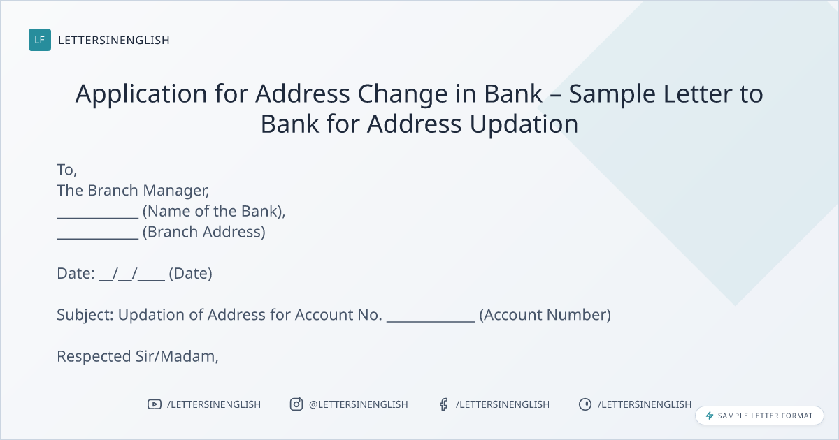 Application for Address Change in Bank – Sample Letter to Bank for Address Updation