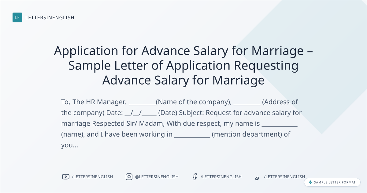 Application for Advance Salary for Marriage – Sample Letter of Application Requesting Advance Salary for Marriage