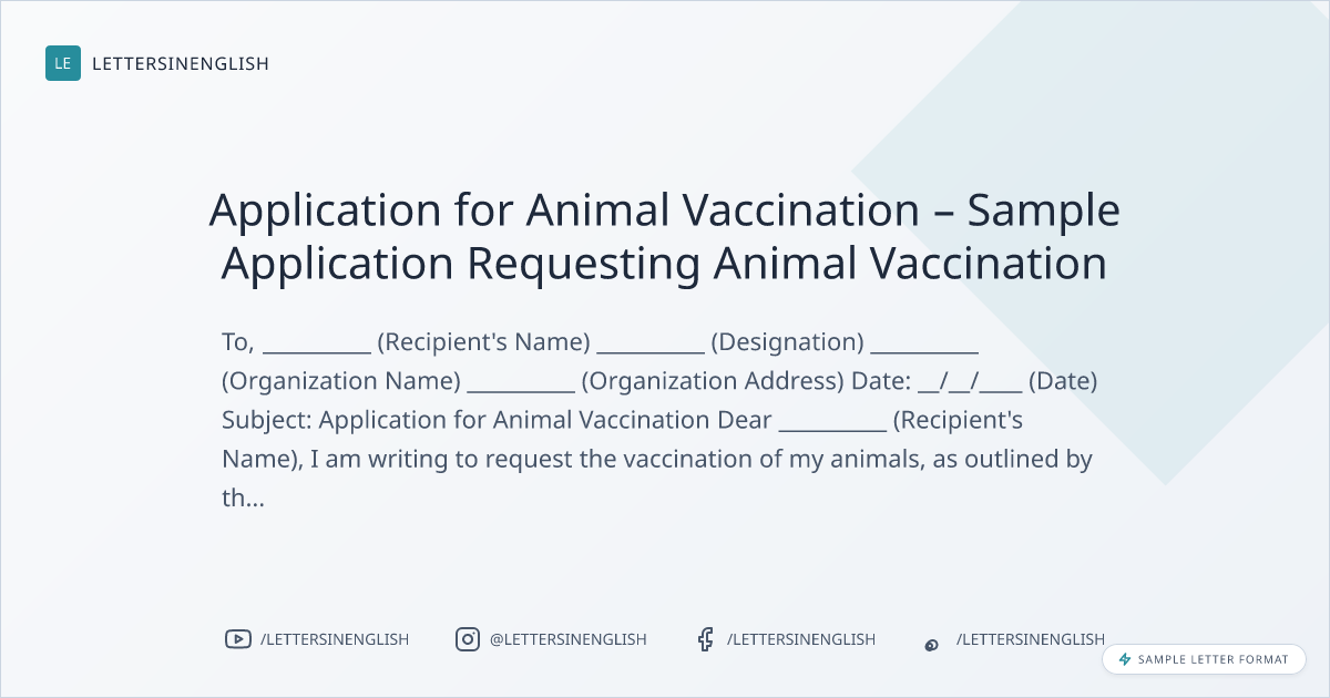 Application for Animal Vaccination Request - Sample Letter for Animal Vaccination