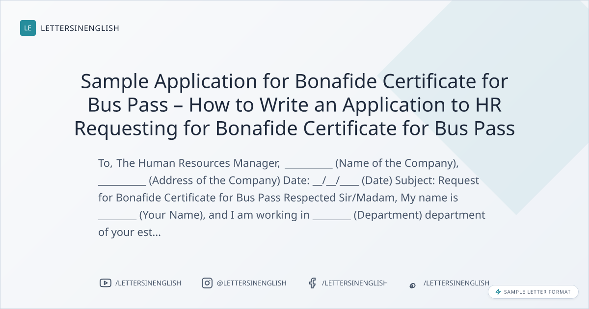 Sample Application for Bonafide Certificate for Bus Pass – How to Write an Application to HR Requesting for Bonafide Certificate for Bus Pass