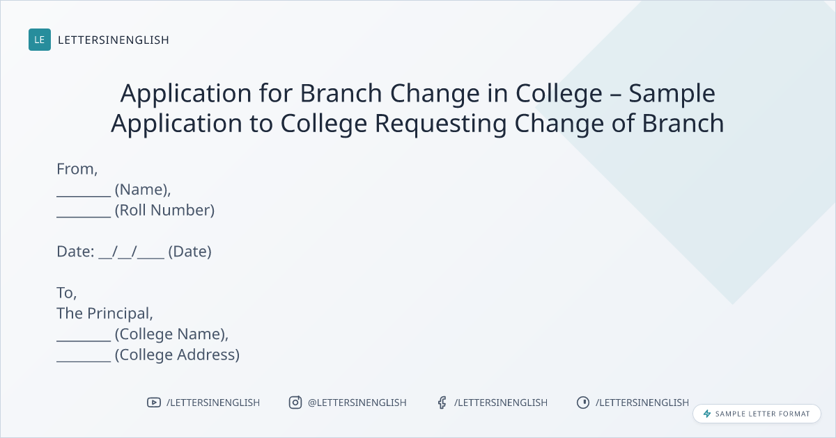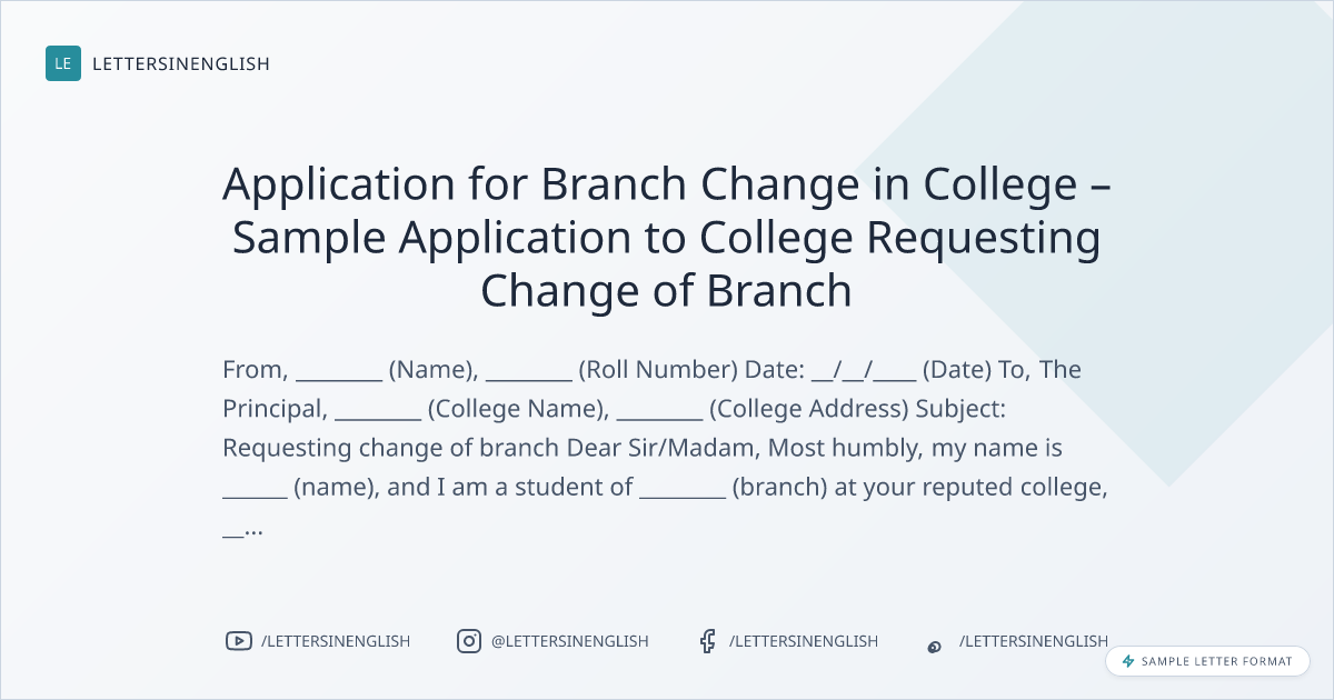 Application for Branch Change in College – Sample Application to College Requesting Change of Branch