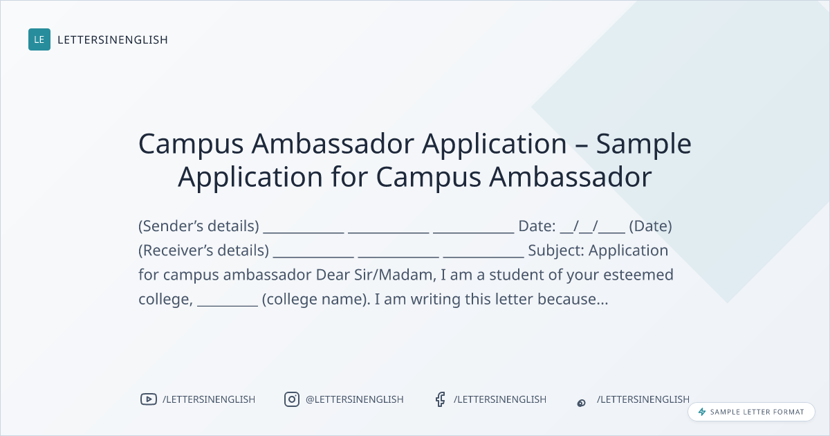 Campus Ambassador Application – Sample Application for Campus Ambassador