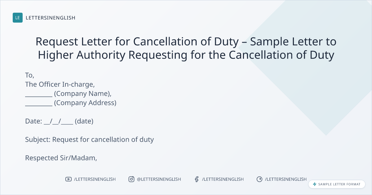 Request Letter for Cancellation of Duty – Sample Letter to Higher Authority Requesting for the Cancellation of Duty