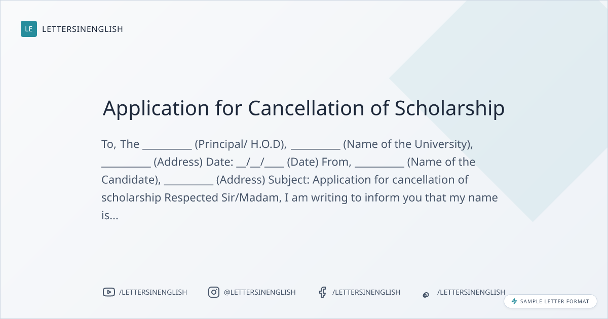 Sample Application for cancellation of scholarship