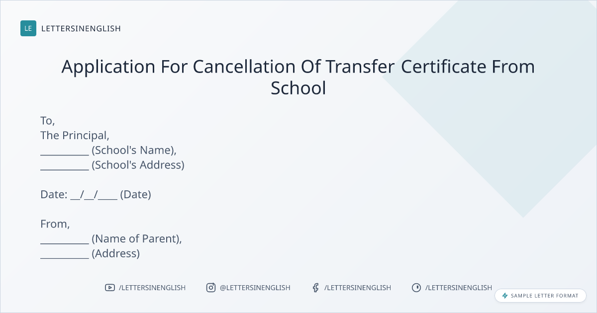 Application For Cancellation Of Transfer Certificate From School