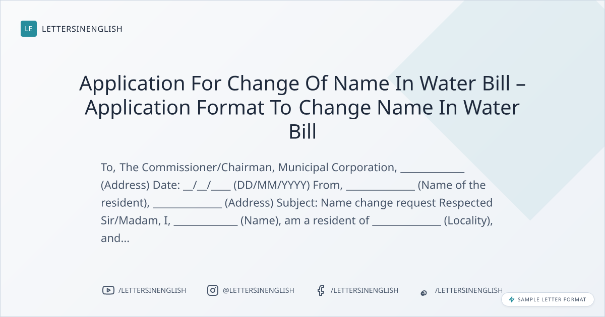 Application For Change Of Name In Water Bill – Application Format To Change Name In Water Bill