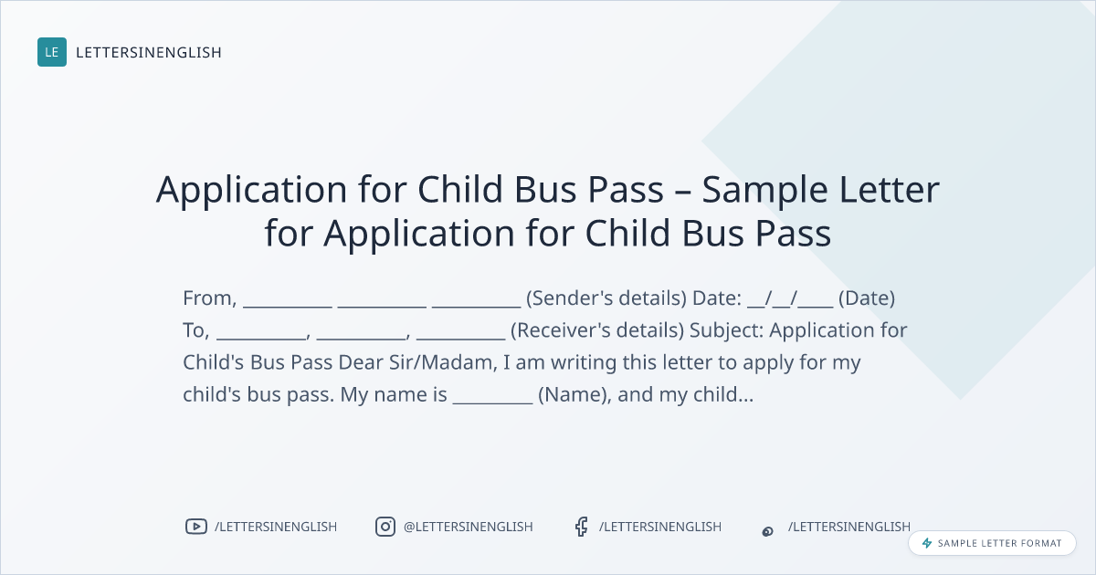 Application for Child Bus Pass – Sample Letter for Application for Child Bus Pass