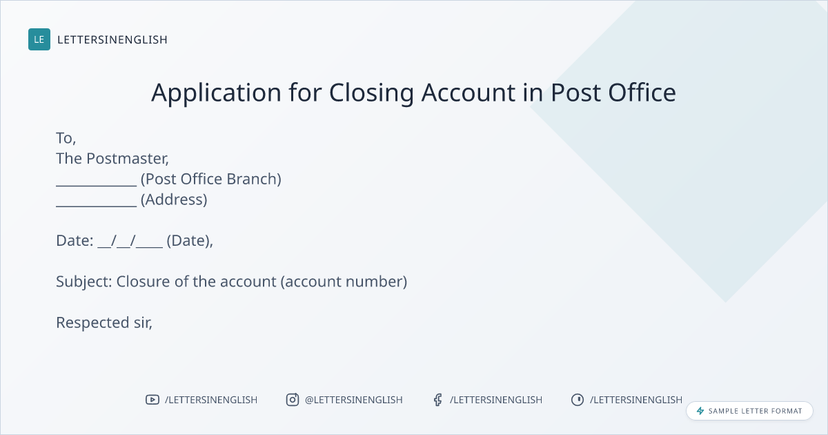 Sample Request Letter for Closing Account at Post Office