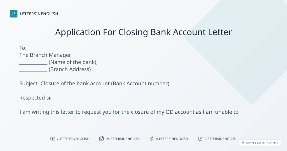 Application For Closing Bank Account Letter