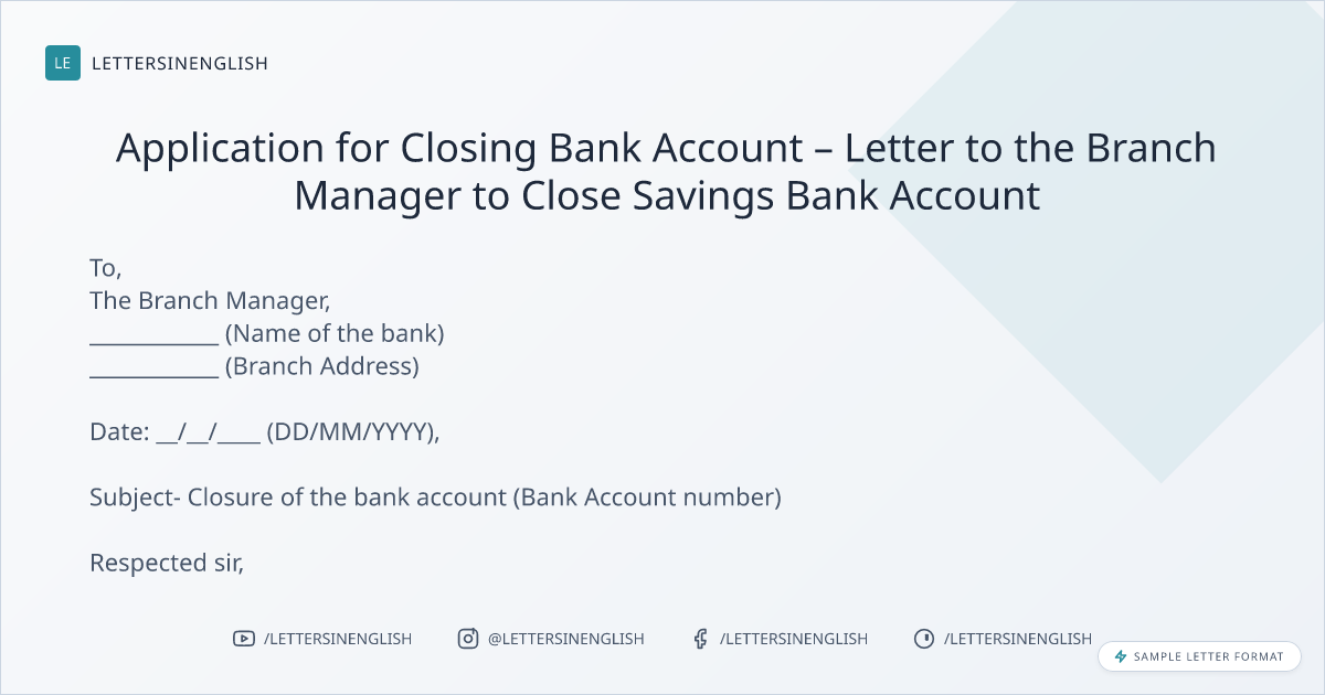 Letter Regarding Close Savings Bank Account - Letter to Bank About Closing Savings Account