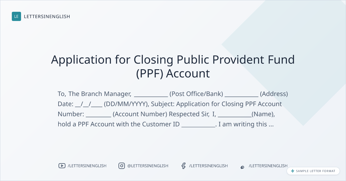 Request Letter for Closure of Public Provident Fund (PPF) Account