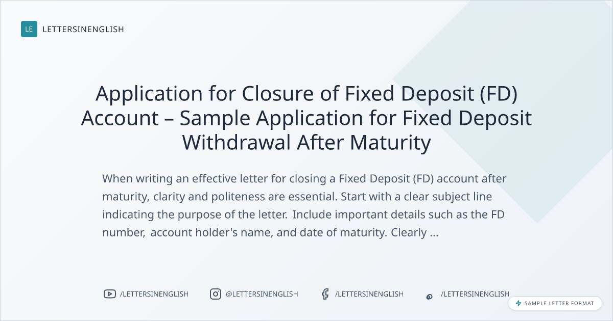 Application for Closure of Fixed Deposit (FD) Account – Sample Application for Fixed Deposit Withdrawal After Maturity