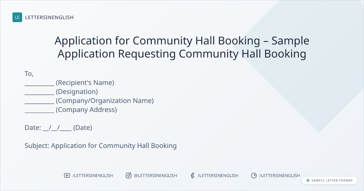 Application for Community Hall Booking – Sample Application Requesting Community Hall Booking