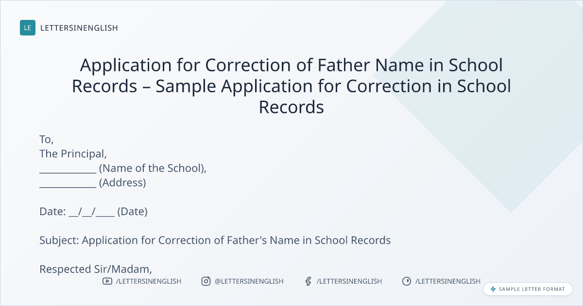Application for Correction of Father Name in School Records – Sample Application for Correction in School Records